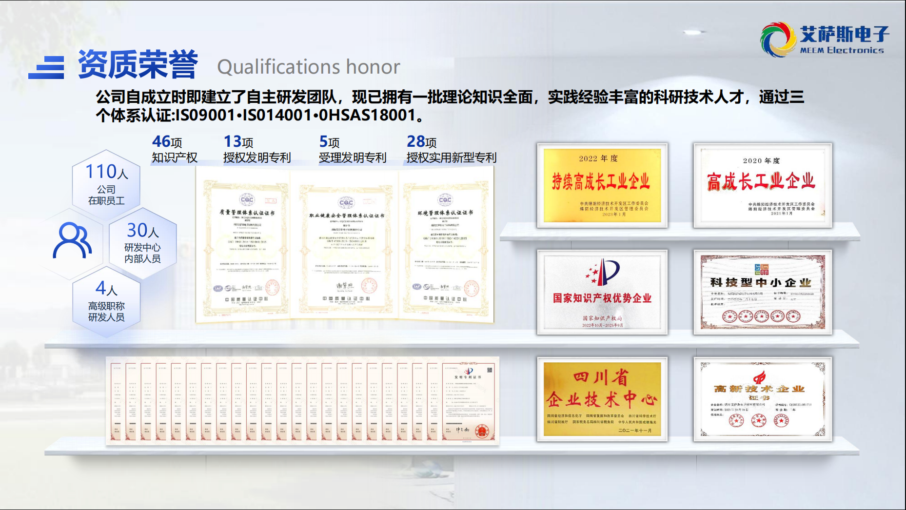 绵阳艾萨斯电子材料有限公司(Mianyang MEEM Electronic Materials Co.,Ltd.),立足四川绵阳,是西南首家自主研发电子湿化学品的生产型企业,同时也是国内首批自主研发电子湿化学品的终端企业,专注于为液晶显示面板、半导体及光学玻璃领域提供电子化学品相关服务,是集研发、生产、销售、售后于一体的高新技术企业。